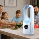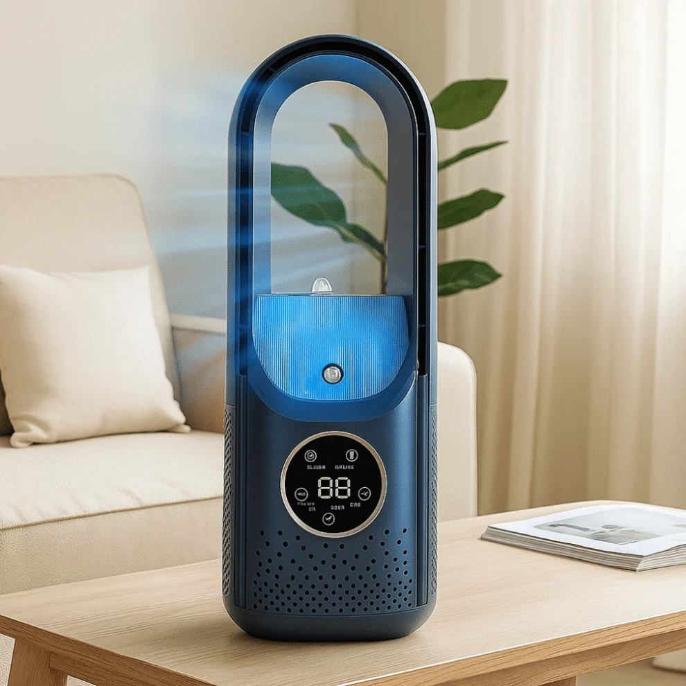 Beat the heat with a bladeless USB portable fan designed for safe, quiet cooling. Bladeless design eliminates exposed spinning parts, making it safe for children and pets. Whisper-quiet operation under 50 decibels won’t disturb sleep, work, or study sessions. Six speed settings with built-in timer provide customized comfort for any environment. USB powered flexibility works with laptops, power banks, or standard wall adapters.