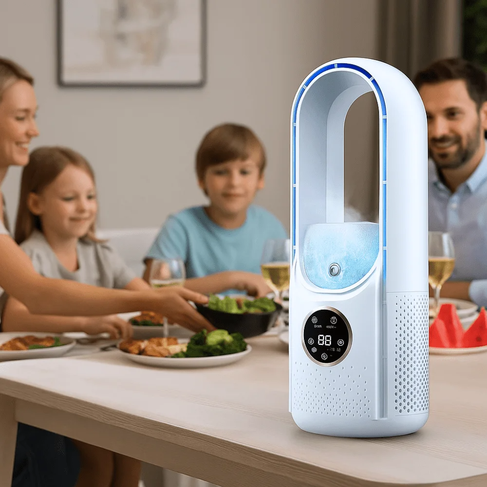 A: Yes, the bladeless design has no exposed spinning parts, eliminating the risk of finger injuries. The stable base prevents easy tipping, making it safer than traditional fans for families.
