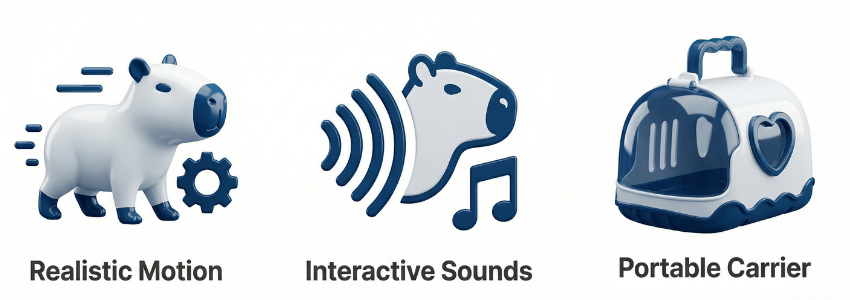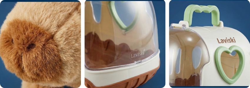 Crafted with premium soft fur and durable materials, our CapyBuddy is built for endless cuddles and playdates. The portable carrier ensures your pet stays safe during travel, while the battery-operated motor delivers smooth movement on flat surfaces. It is the perfect gift set for kids who dream of having a unique pet friend.