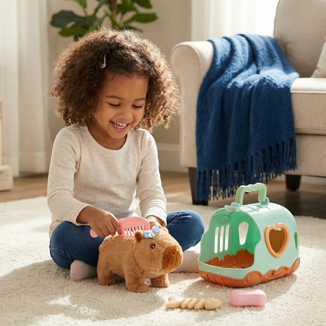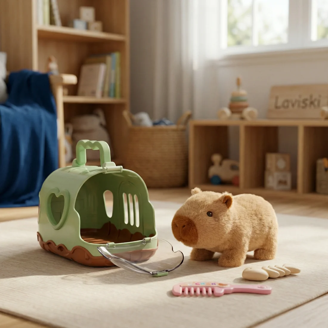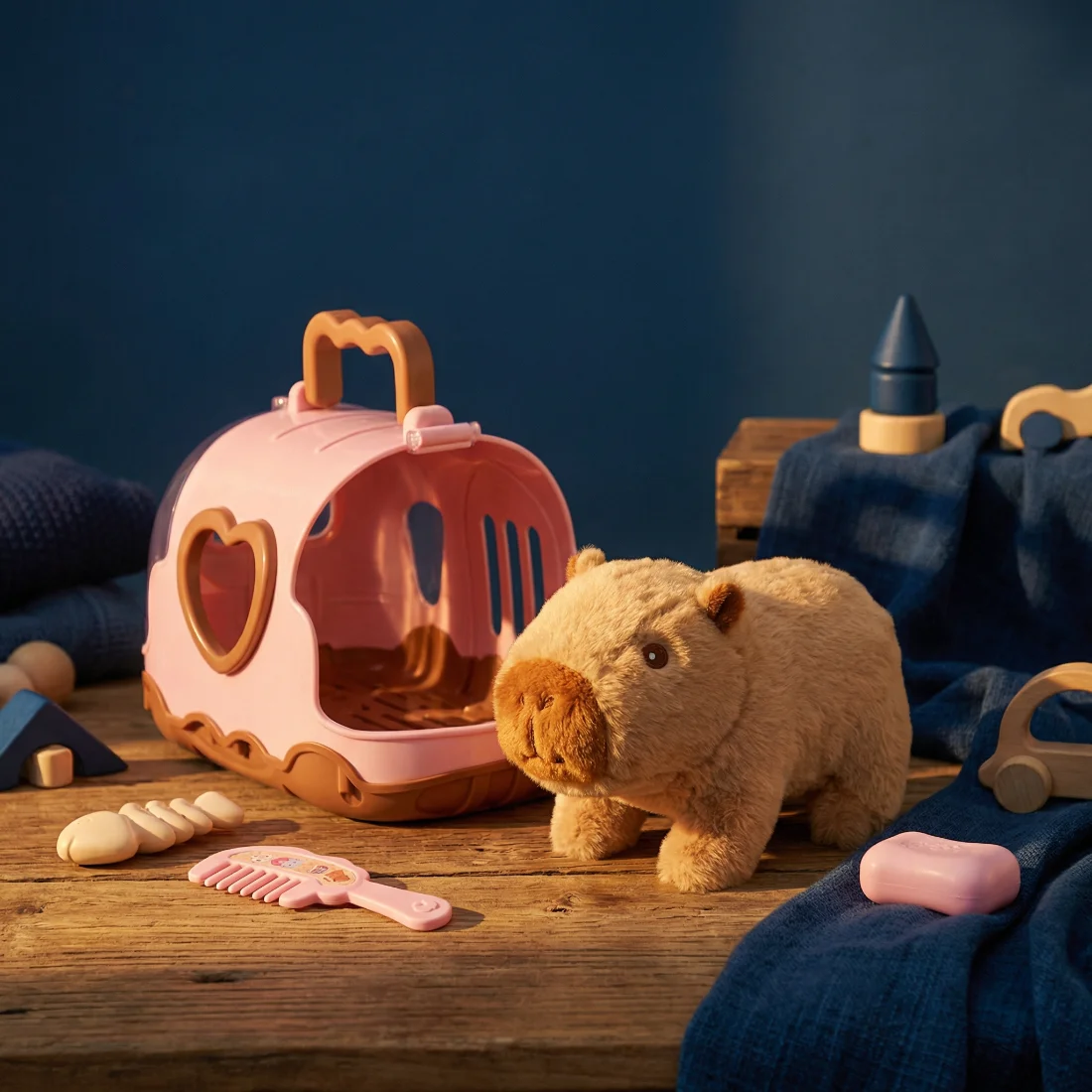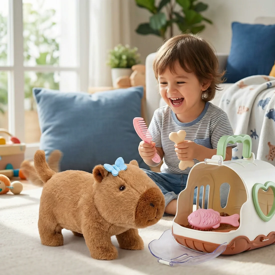 The CapyBuddy Interactive Walking Capybara brings the internet’s favorite animal to life in your home. This electric plush toy features realistic walking motions, swinging ears, and charming simulated calls. It provides hours of interactive play, teaching children responsibility through grooming and care with the included accessories and travel carrier.