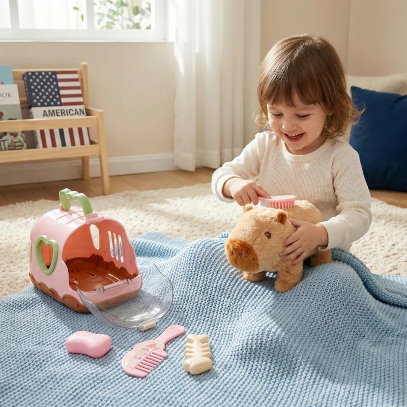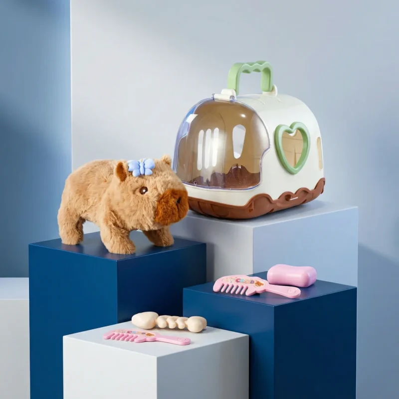 - Package Includes: 1x CapyBuddy, 1x Portable Carrier, 1x Comb, 1x Soap, 1x Bone.