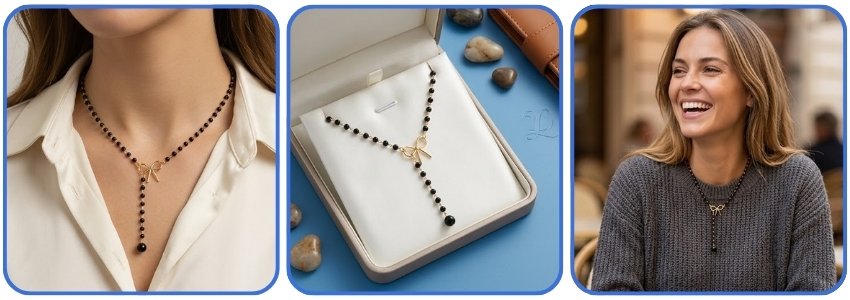 Whether you’re dressing up for work, meeting friends for brunch, or attending an evening event, thisΒ versatile pearl chokerΒ effortlessly elevates any outfit. TheΒ classic black beadsΒ complement gold jewelry beautifully, while theΒ elegant bow detailΒ adds a feminine touch that garners compliments. Quality construction ensures your necklace maintains its beauty wear after wear, making it a smart addition to your jewelry collection.