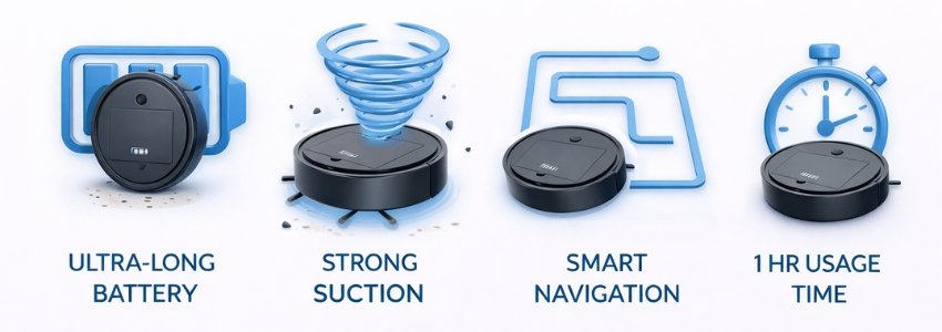 - Ultra-Thin Body: Only 8cm tall to fit easily under beds and sofas.