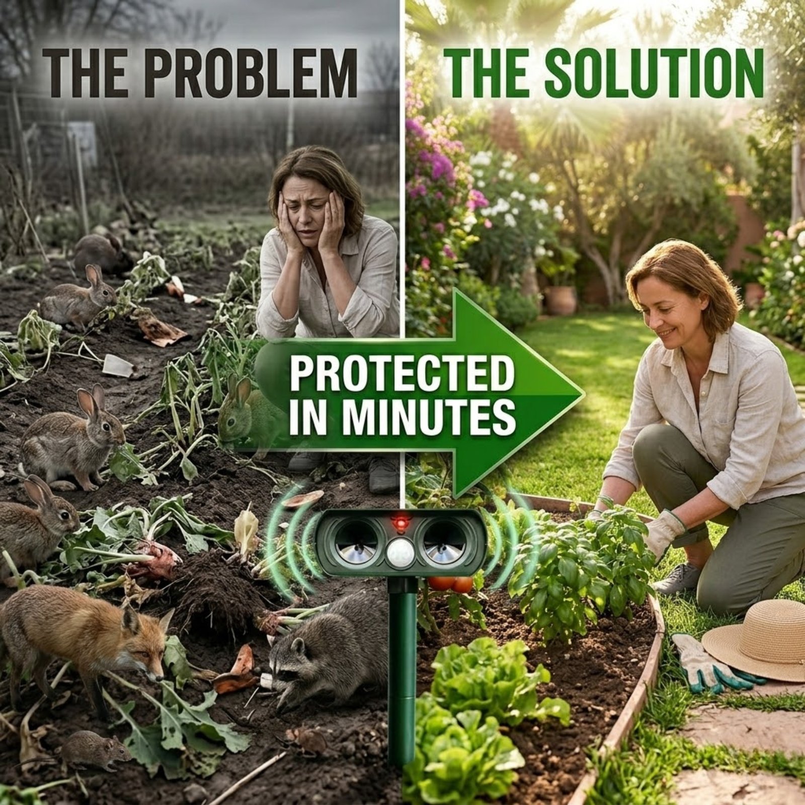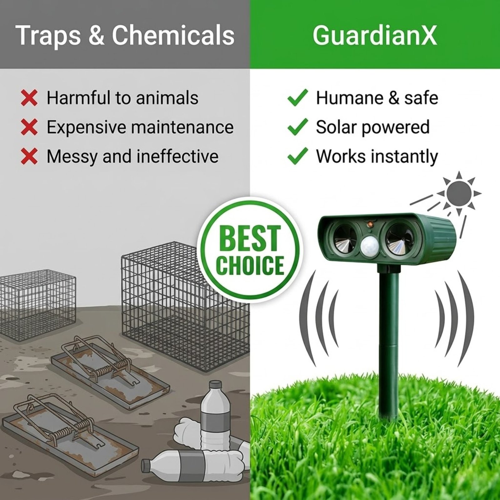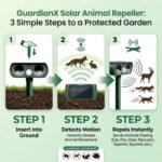 Reclaim your outdoor space with the GuardianX Ultrasonic Animal Repeller. This solar-powered device uses advanced sensors to detect movement, triggering humane ultrasonic frequencies and flashing LED lights. It effectively deters cats, deer, and rodents without the need for toxic chemicals, ensuring your garden stays pristine and safe for your family and pets.