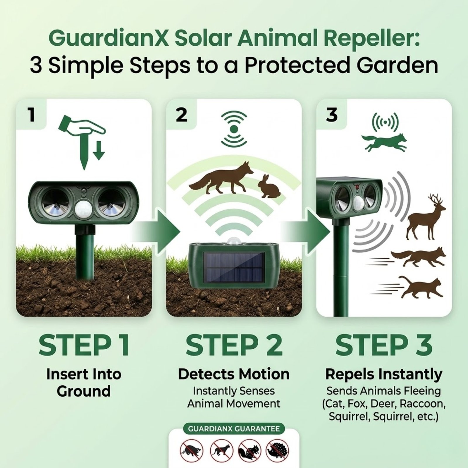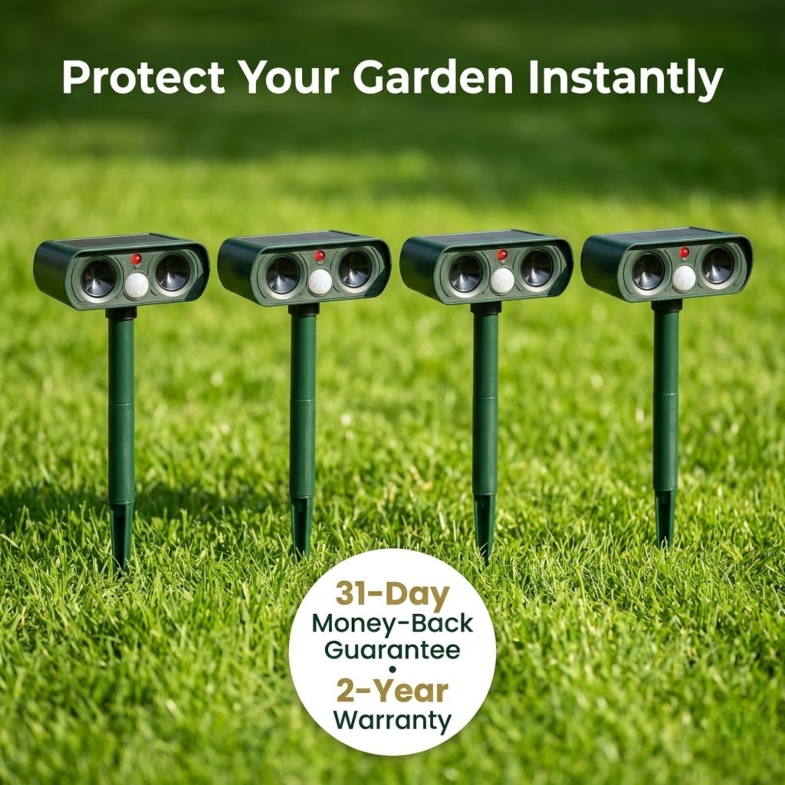 Every GuardianX Solar Animal Repeller comes with a 2-Year Warranty and a 31-Day Money-Back Guarantee — so you can shop with confidence knowing your landscape is protected.