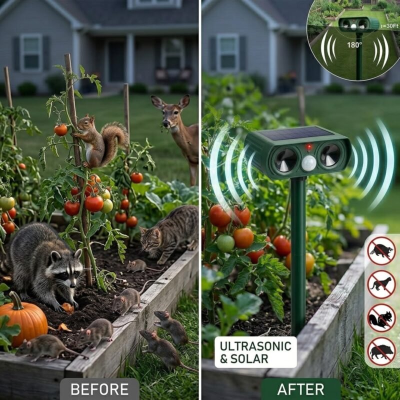 - Multi-Pest Control: Effectively repels cats, dogs, foxes, squirrels, birds, and rodents with adjustable frequencies.