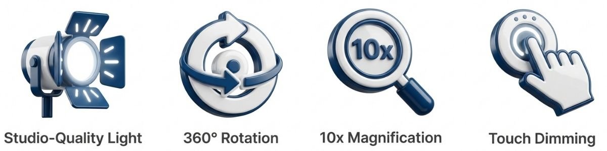 - Precision Magnification: Includes a 10x mini mirror for detailed eyeliner and skincare tasks.