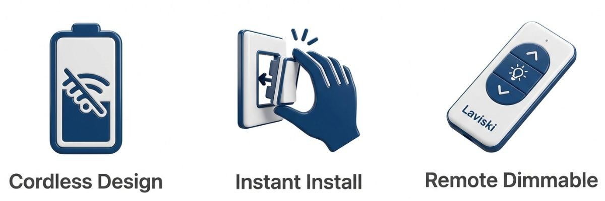Experience total control with theΒ remote-operated dimmingΒ andΒ color warmth settings. TheΒ LumiTwinΒ installs in seconds usingΒ strong 3M adhesive, ensuring aΒ renter-friendly setupΒ that won’t damage walls. TheseΒ integrated LED fixturesΒ combineΒ minimalist designΒ withΒ energy-saving performance, offering aΒ custom ambianceΒ tailored specifically to your lifestyle and aesthetic.