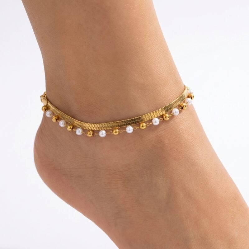 A: The imitation pearls are securely attached using reinforced jewelry-grade techniques, and the double-chain construction provides exceptional durability. The stainless steel base resists breaking or bending, making this anklet suitable for active wear.