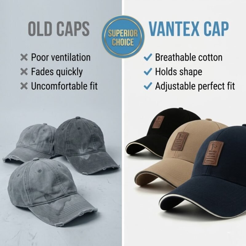 A: The Vantex delivers superior quality that lasts. While cheaper caps fade, lose shape, and fall apart, this premium cotton cap maintains its appearance and performance for years, making it a better long-term value.