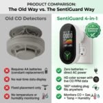 The SentiGuard 4-in-1 Detector offers ultimate protection against the silent threat of carbon monoxide. Featuring a high-precision sensor, it monitors CO levels, temperature, and humidity simultaneously. The plug-and-play design eliminates battery anxiety, while the rotating plug fits any outlet perfectly. Stay safe with a device designed for modern homes and adventurous RV lifestyles.