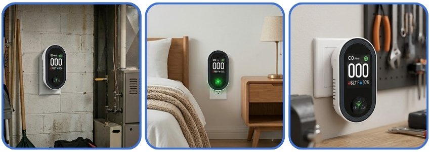 - Bedrooms & Garages: Place near sleeping areas or exhaust sources for early warning detection.