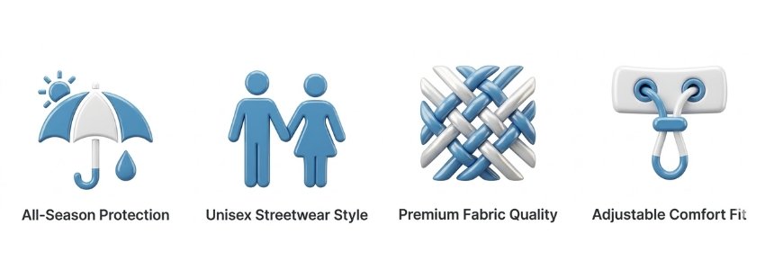 • Four-Season Functionality: Breathable yet protective fabric transitions seamlessly from summer beach trips to spring festivals and autumn hikes