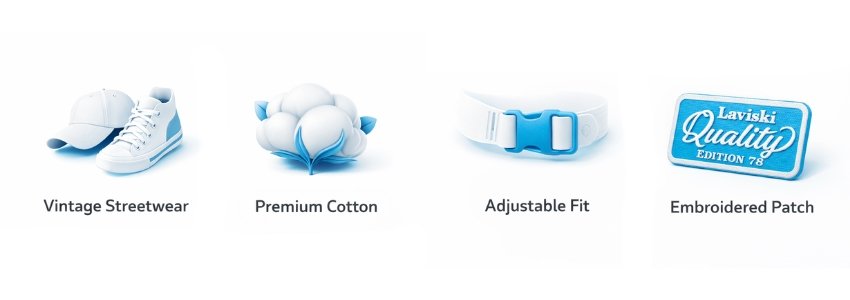 TheΒ Laviski Vintura Vintage Trucker CapΒ brings authentic streetwear style to your everyday wardrobe. Crafted fromΒ premium soft-washed cotton, this cap features a distinctiveΒ embroidered vintage patch designΒ that captures the spirit of classic Americana with a modern edge. TheΒ unstructured crownΒ delivers that perfect lived-in look while theΒ curved brimΒ provides practical sun protection. Available in six stunning colorways including Pink, Navy Blue, Khaki, Black, White, and Red.