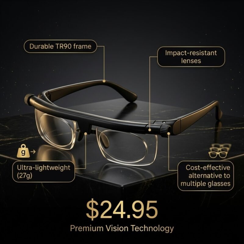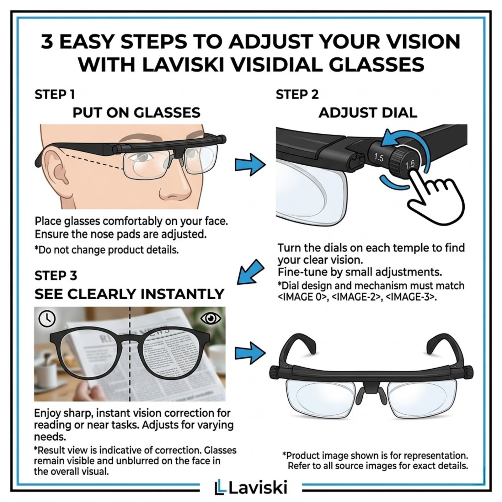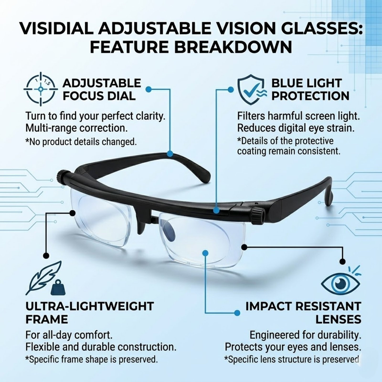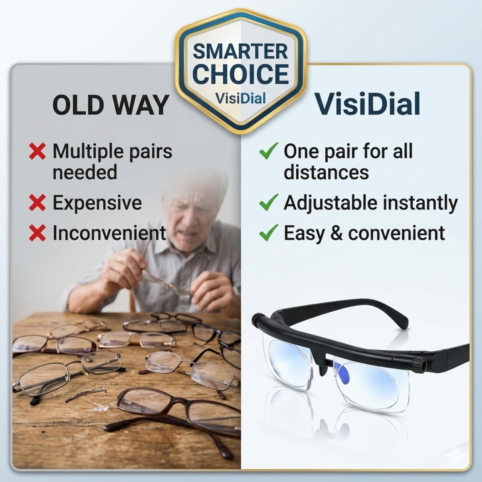 Experience the future of optics with VisiDial, the ultimate adjustable reading glasses. Designed with innovative dial technology, these spectacles allow you to fine-tune your vision from near to far in seconds. No more juggling multiple pairs; get instant 20/20 clarity for reading, driving, or computer work with one sleek, durable solution.