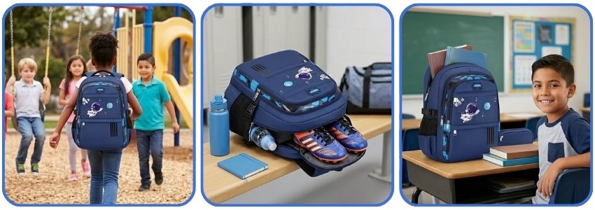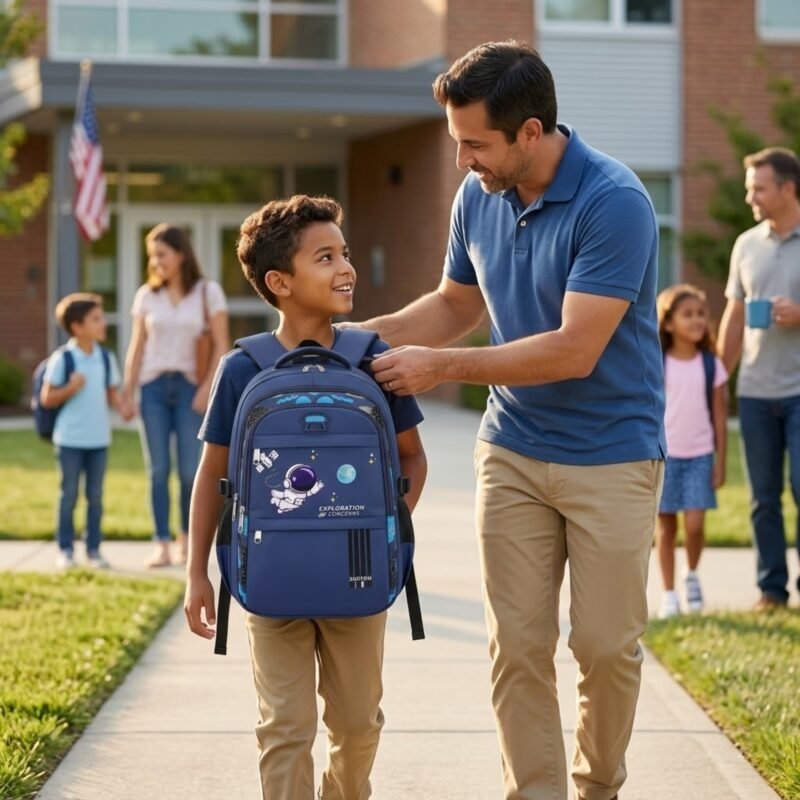 Built from premium Oxford fabric with reinforced stitching at stress points, this backpack survives years of playground adventures and daily use. Breathable mesh back panels keep kids comfortable, while reflective safety strips provide visibility during early morning or after-school activities. Available in two sizes—small for grades 1-3, big for grades 4-8—with blue, black, and green color options to match every young explorer’s personality.